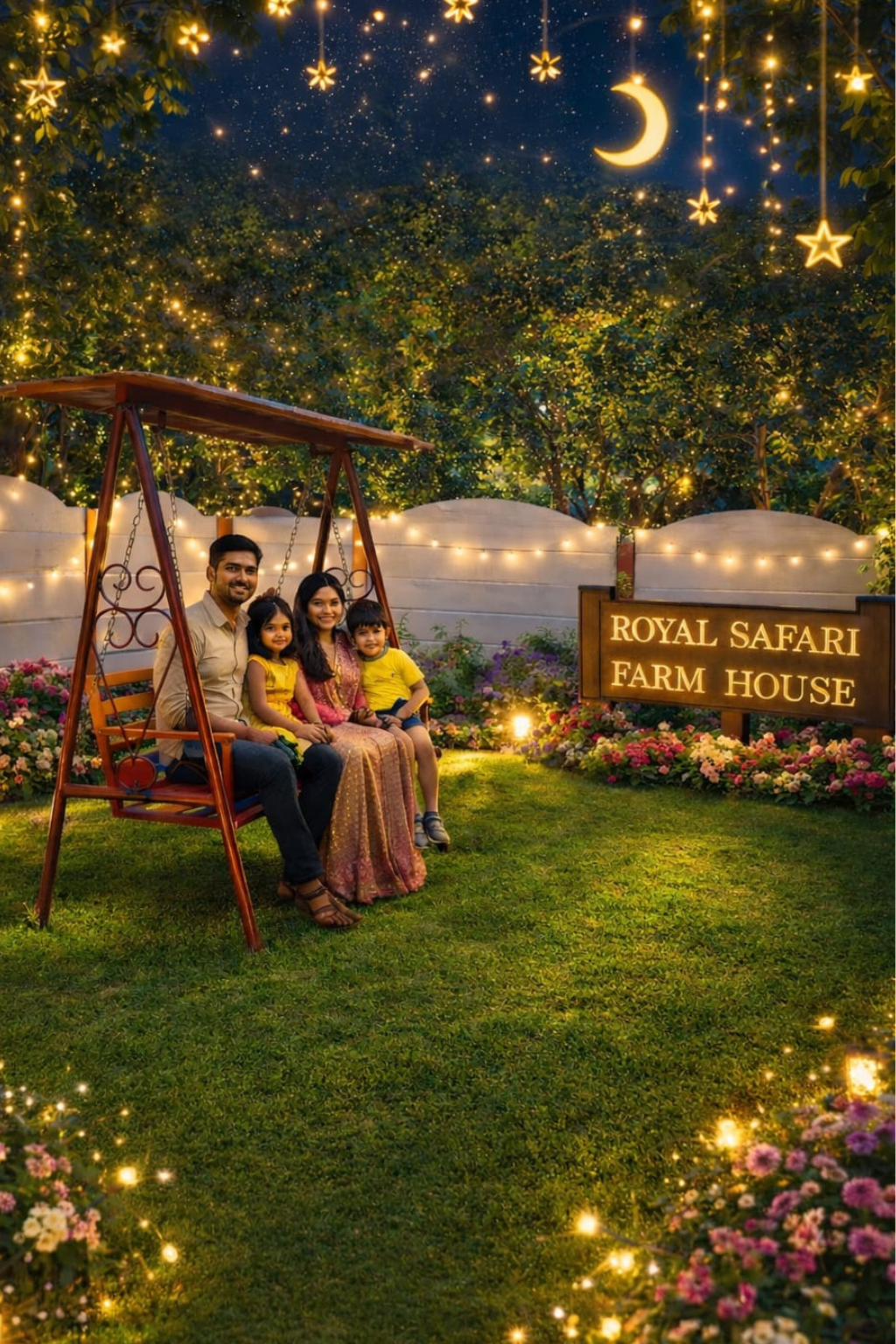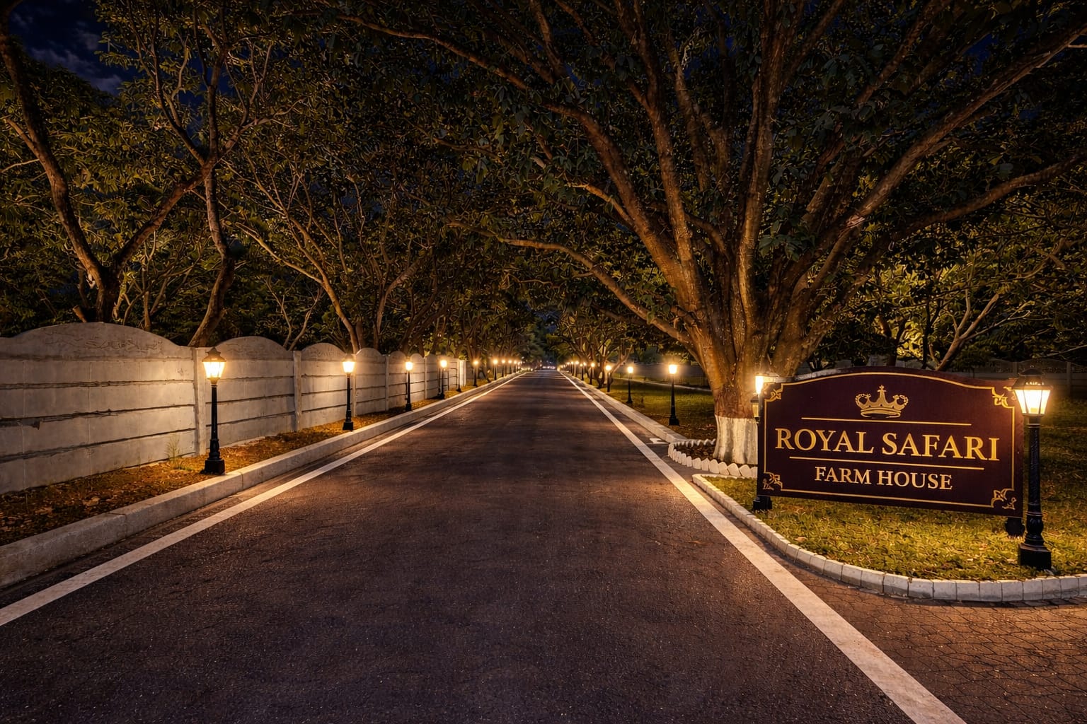 At Royal Safari Farms, every unit is developed with a modern farmhouse concept, combining greenery, comfort, and long-term value. Buyers get land with construction included, starting from a minimum size of 5000 sq.ft., with extension options available up to 10,000 sq.ft., 15,000 sq.ft., and beyond according to requirement.